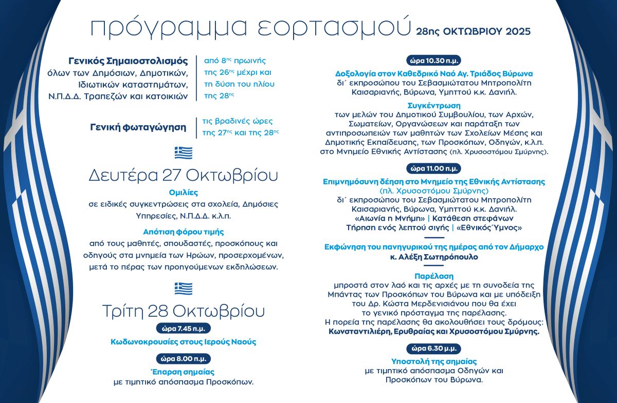 Δήμος Βύρωνα: Πρόγραμμα Εορτασμού 28ης Οκτωβρίου 2025