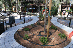 Παράλληλα, πραγματοποιήθηκαν φυτεύσεις δέντρων όπως μανόλια, φλαμουριά και ροδιά, καθώς και καλλωπιστικών θάμνων και ποωδών ανθοφόρων φυτών, ενισχύοντας το πράσινο.